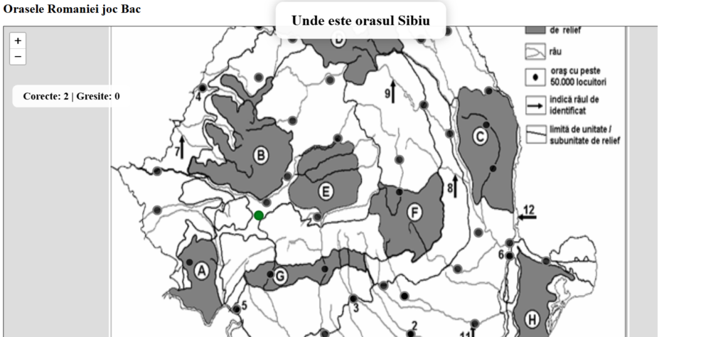 Joc de tip harta ce te ajuta sa inveti pentru bac geografie Orasele Romaniei pe harta asemanatoare celei de la examen |